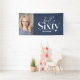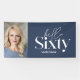 Modern minimal typography simple navy blue and white 60th birthday photo party banner. Part of a contemporary collection.