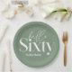 Modern minimal typography simple sage green and white 60th birthday party favour decor paper plate. Part of a contemporary collection.