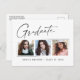 Modern Minimal Unique Ink Script Graduate 3 Photo Postcard