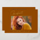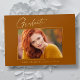 Clean, trendy, modern and elegant "Photo" graduation announcement gold foil cards (your choice of gold silver or rose foil), featuring design elements of modern text with a unique calligraphy ink script. The graduate's photo on the front of the card is accented with a delicate & minimalist partial boarder. The back of the card offers personalised text spaces for information about your graduation or can be cleared if you wish to hand write a message. Burnt orange, rust colours with gold foil or easily customise the background to match your school's primary colour or any colour of your choice. Perfect for the high school, college and university grad student senior.