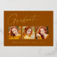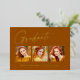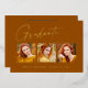 Clean, trendy, modern and elegant "3 Photo" graduation announcement gold foil cards (your choice of gold silver or rose foil), featuring design elements of modern text with a unique calligraphy ink script. The graduate's photos are accented with a delicate & minimalist partial boarder. The back of the card offers personalised text spaces for information about your graduation or can be cleared if you wish to hand write a message. Burnt orange, rust colours with gold foil or easily customise the background to match your school's primary colour or any colour of your choice. Perfect for the high school, college and university grad student senior.