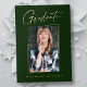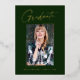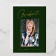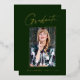 Clean, trendy, modern and elegant "Photo" graduation announcement gold foil cards (your choice of gold silver or rose foil), featuring design elements of modern text with a unique calligraphy ink script. The graduate's photo on the front of the card is accented with a delicate & minimalist partial boarder. The back of the card offers personalised text spaces for information about your graduation or can be cleared if you wish to hand write a message. Emerald green with gold foil or easily customise the background to match your school's primary colour or any colour of your choice. Perfect for the high school, college and university grad student seniors.