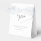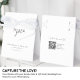 Modern, minimal, handwriting font, white, with your name, date & QR Code Photo Sharing Favour Box. Just edit your product in a few minutes. Celebrate your love with our customised Favour Boxes.