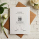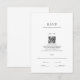 The RSVP card features a minimalist and elegant design with a white background, black text, and a balanced, centre-aligned layout. It combines serif and sans-serif fonts for sophistication and clarity, with bold elements highlighting key details. A QR code is prominently placed in the centre for online RSVP convenience, while meal options with checkboxes are neatly arranged below. The overall look is clean, modern, and functional, perfectly suited for a formal event.