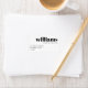 Modern, white return address labels featuring the names and surname aligned to the right, and return address aligned to the left.