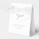 Modern, minimal, handwriting font, white Wedding Favour box with your name and date.