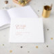 The clean layout, enhanced by a blend of classic and scripted fonts, emphasizes simplicity and sophistication. Personalise the guest book with your names, wedding date, and text.
