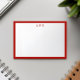 A modern simple and minimalist note card in red border that comes with three lettered monogram or initials.