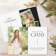 This graduation invitation features elegant text on a white background accented with a simple vertical line. This modern minimal design offers space for three photos of the graduate. Personalise this invitation with your graduation party details.