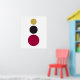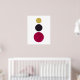 A modern, minimalist abstract art poster of three circles on a white background. The larger circle at the bottom is in a deep red with an overlaid faded effect, the circle above is slightly smaller in a deep, darl purple and the very last circle is smaller still in yellow. A lovely addition to any home.