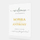 Welcome guests in style with this elegant modern acrylic wedding welcome sign featuring sleek typography in classic black paired with rich golden mustard text (#c89705). This minimalist design adds a sophisticated touch to your wedding decor without florals—perfect for contemporary, chic, or urban weddings. Ideal for indoor or outdoor settings including garden weddings, boho venues, rooftop receptions, and modern ceremonies. Personalise with your names and date for a clean, timeless entrance piece your guests won’t forget. Great for acrylic signage lovers who want a bold, refined look.