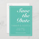 Pretty, modern, minimalist and trendy Save the Date postcard features an aqua blue background (Pantone's 2022 colour pick "Cascade") with white customisable text blocks in modern fonts