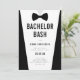 Celebrate the groom-to-be with this bold black-and-white Bachelor Bash invitation, designed to look like a sleek tuxedo with a classic bow tie. Featuring clean modern typography and a minimalist layout, this stylish invite is perfect for setting the tone for a fun night out before the wedding. Personalise with the groom’s name, date, location, and RSVP details to make it your own.