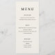 Modern wedding menu with simple minimalist typography design in black and ecru colour.