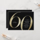 Modern minimalist 60th birthday party invitation features stylish faux gold foil number 60 and your party details in classic serif font on black background colour, simple and elegant, great surprise adult milestone birthday invitation for men and women.