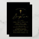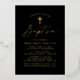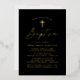 The simple baptism invitations feature a casual gold foil calligraphy script with a black background for a design that is perfect for modern baby baptisms. Personalise the elegant baptism invitations with your child's name and religious event details below. The back of the black and gold foil baptism invitation provides space for additional text and photos.