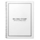 Modern minimalist notebook features custom name and text in black modern sans serif font style with black border on white background.