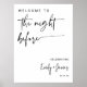 Celebrate your special evening in style with this modern minimalist rehearsal dinner welcome sign. Featuring sleek black typography paired with elegant hand-lettered script on a crisp white background, this design offers a timeless and sophisticated look. Ideal for couples hosting a chic “Night Before” celebration, this sign blends seamlessly with contemporary, romantic, or classic wedding themes. Perfect for displaying at your venue entrance, on an easel, or as part of your event décor. The clean design makes it easy to pair with any colour scheme or floral arrangement.