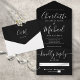 Modern Minimalist Black And White Script Wedding All In One Invitation