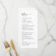 This modern minimalist dinner menu combines sleek black and white elements for a timeless and chic look. With black script against a clean white background. The simple yet elegant design ensures that your meal selections are presented beautifully. Matching items available.