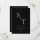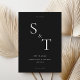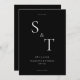Modern wedding save the date card featuring minimalist monogram typography and in black and white colour. Personalise text with all the details of your special day.