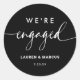 Modern Minimalist Black Calligraphy We're Engaged Classic Round Sticker