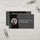 Features your photo or logo with a red and white border and personal or business name in white typography all on a black and grey background on the front and business name and contact information like phone number, email, website and address on the back. Perfect for professional photographers, hair stylists or other small business owners looking for a simple way to prompt your business at any event, trade show or public setting.