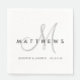 Minimal modern personalised Wedding Reception Napkins with initial. Elke Clarke © A Black Tie Affair with an Elegant Monogram Design using popular typography. Wedding Guest Book. Black, grey and white colours can be changed using the customise menu or contact designer.