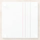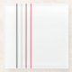 This modern minimalist white glass coaster features thin vertical lines in black, grey, and red.