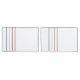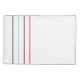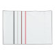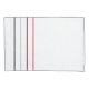This modern white pillow case features thin vertical lines in black, grey, and red.
