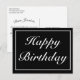 Modern Minimalist Black Happy Birthday Greeting Announcement Postcard