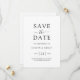 This modern Save The Date card features sleek black script on a white background, offering a minimalist and elegant design. Perfect for couples seeking a simple and stylish way to announce their special day, this card can be personalised with all the essential details. Matching items available.