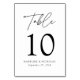 Elegant wedding table number card displaying the word "Table" in a black handwritten script with the table number, your names, and wedding date shown below with a white background. The design repeats on the back. To order the table number cards, simply type each number and add it to your cart.