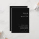 This modern minimalist | black wedding invitation is perfect for your classy boho wedding. Its simple, unique abstract design accompanied by a contemporary minimal script and a black and white colour palette gives this product a feel of elegant formal luxury while staying simplistic, chic bohemian. Keep it as is, or choose to personalise it with artwork or graphics of your choice. You can also look to other products within this collection to bring your whole wedding together!