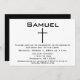 Invite friends and family to celebrate your child's special dedication with these sleek and modern black-and-white invitations. The minimalist design features a simple cross with your son/daughter's name—accompanied by your ceremony and celebration details. Baby dedication cards.