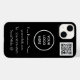 Elegant, modern, minimalist, Logo, QR Code, stylish, simple black and white iPhone 14 case. Perfect for business. Personalise with name, website and logo.