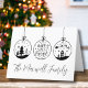 A perfect Christmas card for either personal (family name) or business use. Features 3 ornaments, one with 'Merry And Bright' in the centre. The other two have winter scenes like a Christmas Tree and Santa and the reindeer flying over a house. A fun, yet simple and modern print! Right now it is a black and white colouring, but you can switch out any of the colours to whatever you'd like to use! Even the ornaments and text can be changed. A mix of modern and script typography. Personalised Family Name Simple Minimalist Black White Merry And Bright Christmas Ornament Card.