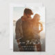 This is a modern black and white wedding save the date card using an elegant calligraphy style font along with a minimalistic photo design.