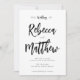 A modern elegant wedding invitation with script font that gives a handwritten feel for the spouse's names and elegant serif font for your wedding information. All text and colours (background and text) can be changed if you want - use the design tool to make further adjustments.