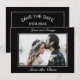 Save the date wedding photo invitation card. Stylish modern minimal black white design with thin black frame.