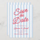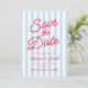 Modern Minimalist Blue and Red Stripes Wedding Save The Date