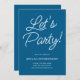 This birthday party invitation features playful script lettering on a blue background for a bold yet elegant look. The flowing typography feels celebratory while staying clean and modern. A versatile design that works beautifully for milestone birthdays, cocktail parties, or festive gatherings.