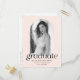 Invite guests to your graduation party with our chic photo graduation party invites. The stylish graduation party invitation postcards feature the graduate's photo framed by a blush arch-shaped frame. "Graduate" is displayed in black modern italicised lettering. Personalise the front of the trendy graduation party invitation by adding the graduate's name, school name, and graduation year. The postcard invite reverses to display your return address and graduation party details.