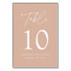 Elegant wedding table number card displaying the word "Table" in a white handwritten script with the table number, your names, and wedding date shown below with a blush background. The design repeats on the back. To order the table number cards, simply type each number and add it to your cart.