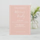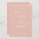 Pretty, modern, minimalist and trendy wedding invite features blush pink background with white customisable text blocks in modern fonts
