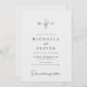 This timeless black and white wedding invitation design exudes understated elegance with its minimalist layout and refined typography. Set against an off-white background, the design features the couple’s initials and a delicate botanical illustration at the top, adding a soft organic touch. A graceful mix of serif and handwritten script fonts highlights the couple’s names and wedding details in a balanced, classic format. Ideal for modern, formal, or nature-inspired weddings, this invitation sets a sophisticated tone while offering a warm, personal welcome to guests. Available as printed cards or an instant digital download.