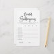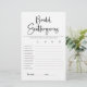 Personalise your bridal shower or bachelorette party with our Modern Minimalist Bridal Shower Scattergories Game card, featuring fully customisable wordings for a unique and tailored experience. This minimalist black-and-white design adds sophistication to your celebration, ensuring a memorable and fun-filled event for all involved.