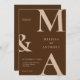 Modern Minimalist Brown Wedding Invitation. Features bold monogram typography and minimal graphic design. Personalise text with all the details of your special day.