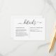 A modern but casual wedding enclosure card in a black calligraphic and sans serif font.