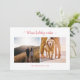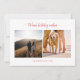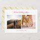 Minimalist Christmas photo card featuring two (2) pictures and the words, in red, "warm holiday wishes", while the back features an elegant golden striped pattern. Easily customise simple holiday cards with your favourite images and custom text.